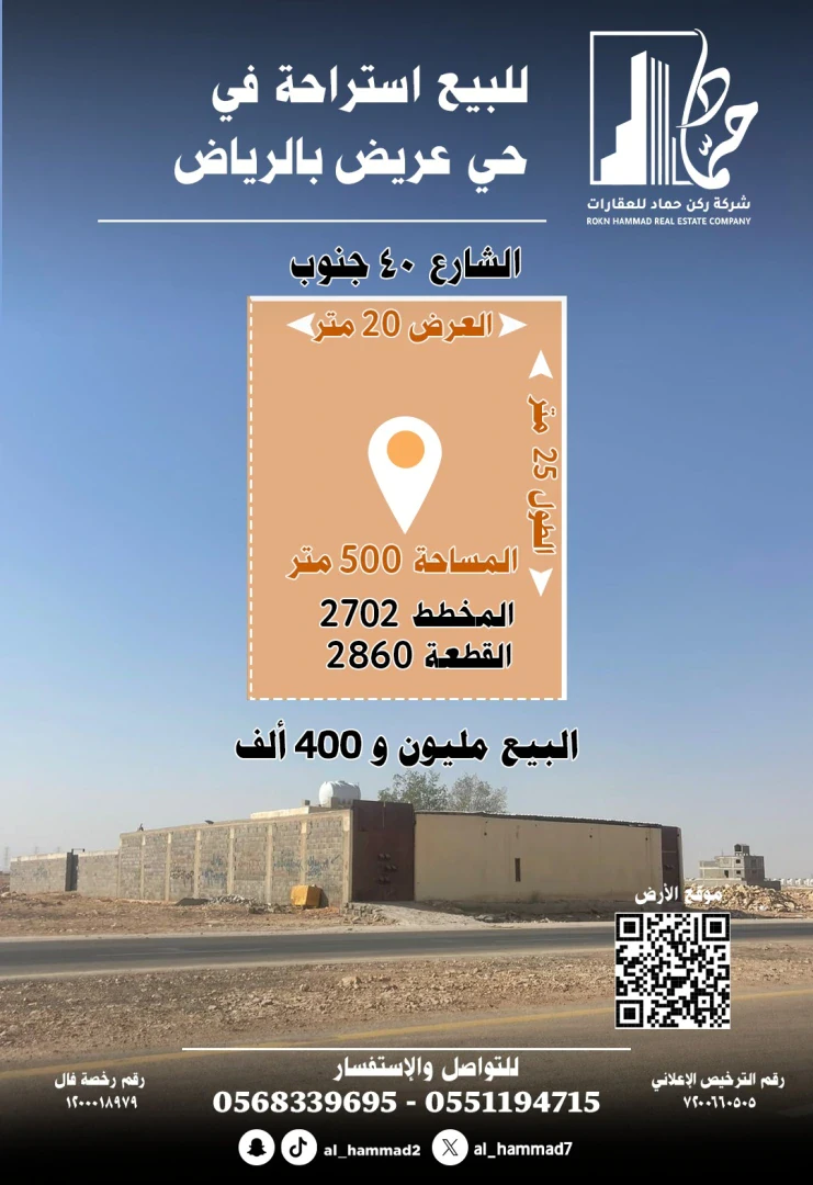 استراحة للبيع في حي عريض, الرياض, السعودية | شركة ركن حماد للعقارات