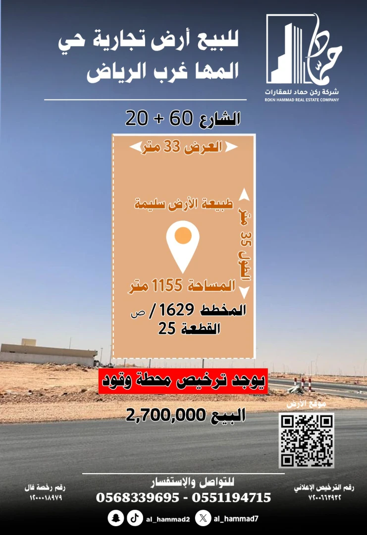 الأطوال 33✖35 يوجد ترخيص محطة وقود ⛽